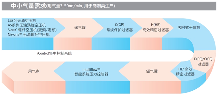 製藥企業要(yào)達到GMP高要求的(de)空氣潔淨度,須對壓縮空氣的含油量、含塵、壓力漏點進行嚴格的(de)控製。