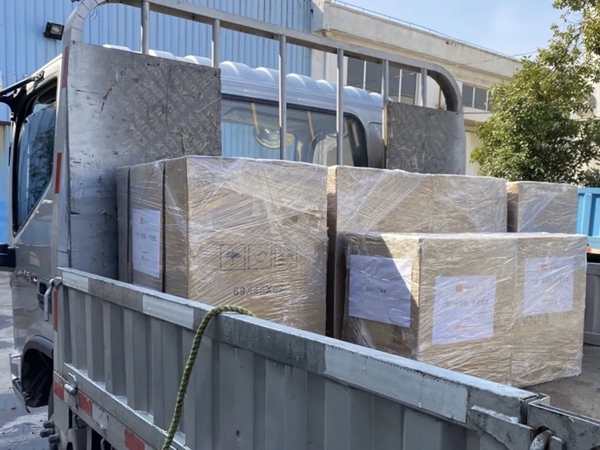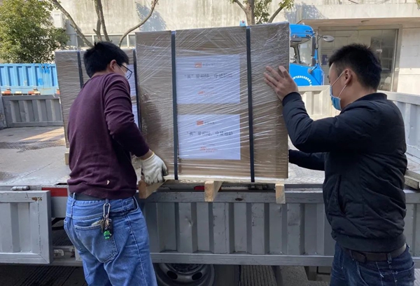 工作人員緊急調配設備,迅速打包(bāo)裝車